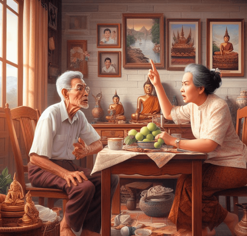 Somchai était réticent à parler du pot d’or à Mai, mais il savait qu’il ne pouvait plus garder le secret. Il lui a dit qu’il l’avait trouvé dans son champ et qu’il avait gardé le secret parce qu’il ne voulait pas changer leur vie.