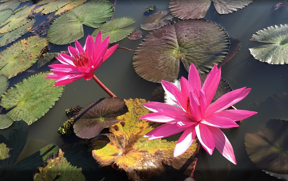 Au bord du lac, les lotus que vous verrez s’appellent bua daeng, ce qui signifie « lotus rouge ». Bien qu’on les appelle lotus rouges, ce sont techniquement des nénuphars tropicaux roses. Environ en novembre et février de chaque année, ces nénuphars pousseront au-dessus de la surface de l’eau, produiront de nouvelles feuilles et fleuriront. Les lotus et les nénuphars fleurissent de la même manière, donc la seule différence entre les deux est que les nénuphars s’élèvent jusqu’à 15 centimètres (six pouces) au-dessus de l’eau et que les lotus ne peuvent flotter qu’à la surface.