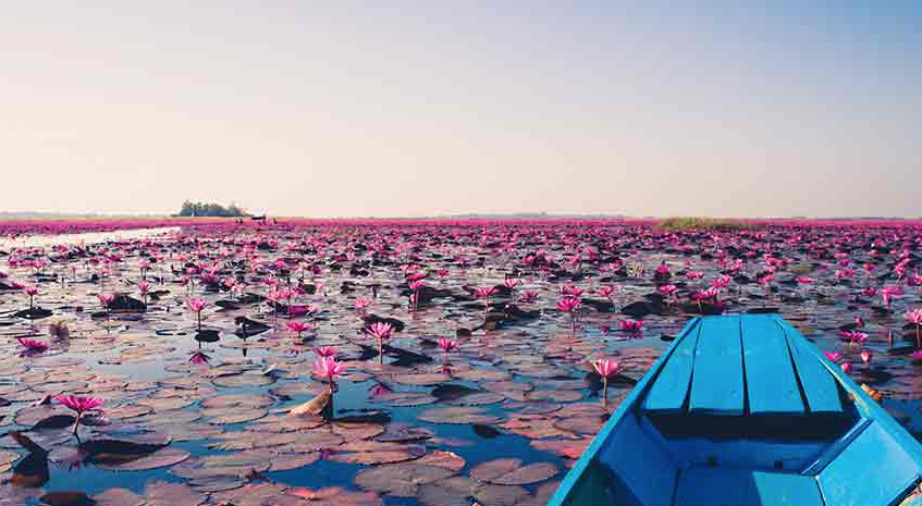 Le lac Nong Han Kumphawapi ou lac du Lotus rouge (Talay Bua Daeng) est une belle destination située dans la province nord-est d’Udon Thani et abrite des milliers de fleurs de lotus.