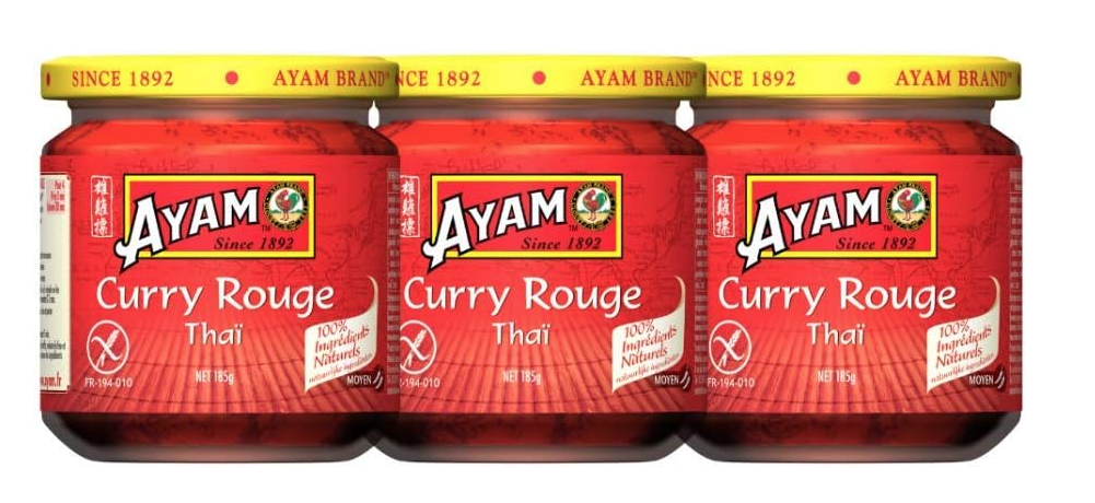 AYAM Pâte de Curry Rouge | 100% Ingrédients Naturels | Saveurs Authentiques | Facile à cuisiner | Curry Thaï | Alimentation Saine | Sans Gluten | Sans Lactose | Sans Conservateurs – 185g – Lot de 3