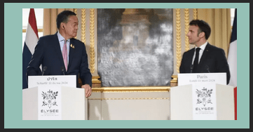 - Srettha, qui est également ministre des Finances, a remercié le président français pour son accueil chaleureux et a félicité la France pour l’organisation des Jeux olympiques d’été de 2024. Il a évoqué les liens historiques entre les deux pays, soulignant leurs positions et leur vision communes en matière d’administration des affaires de l’État, mentionnant en particulier les relations étroites entre la Thaïlande et la France qui remontent à plus de 300 ans. L’année 2025 marquera le 340e anniversaire du premier contact entre le Siam et la France, et le 170e anniversaire des relations diplomatiques franco-thaïlandaises sera célébré en 2026, a-t-il noté.